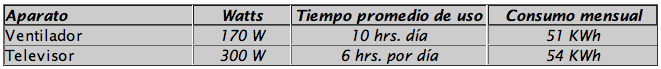 Para obtener información sobre cómo ahorrar energía, consulta las tablas que a continuacion te presentamos:
